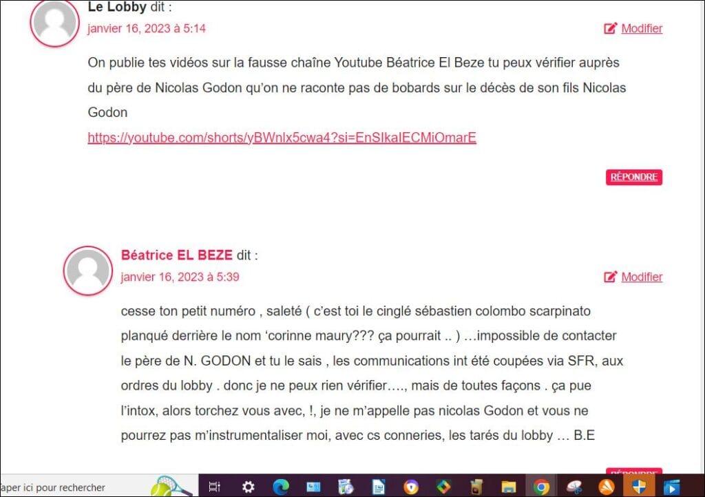 Ma mère est morte à cause de Nicolas Godon je vais le buter on a débloqué les appels pour aujourd’hui sale pute
