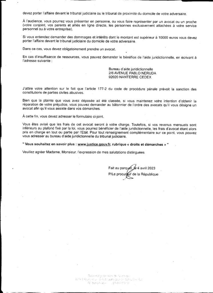 ci dessous : PREUVE QUE LE PROCUREUR PASCAL PRACHE EST BIEN SIGNATAIRE ET RESPONSABLE et que le jugement (plus bas) du CSM se fout de nous en écrivant « le procureur n’ a pas signé » blabla or voir la signature sur le doc du 4 av 2023 : le » P/Le procureur de la Republique » = « pour le procureur de la Republique », du tj nanterre =pascal PRACHE qui est donc engagé dans la signature de son classement sans suite du 4 avril 2023, collabo sciemment aux procédés criminels de sarkozy ! .