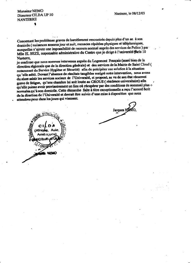 ci dessous 2 courriers de J. NEMO, mon directeur de laboratoire CILDA à l’université, .écrits en mon soutien dès 2003 …