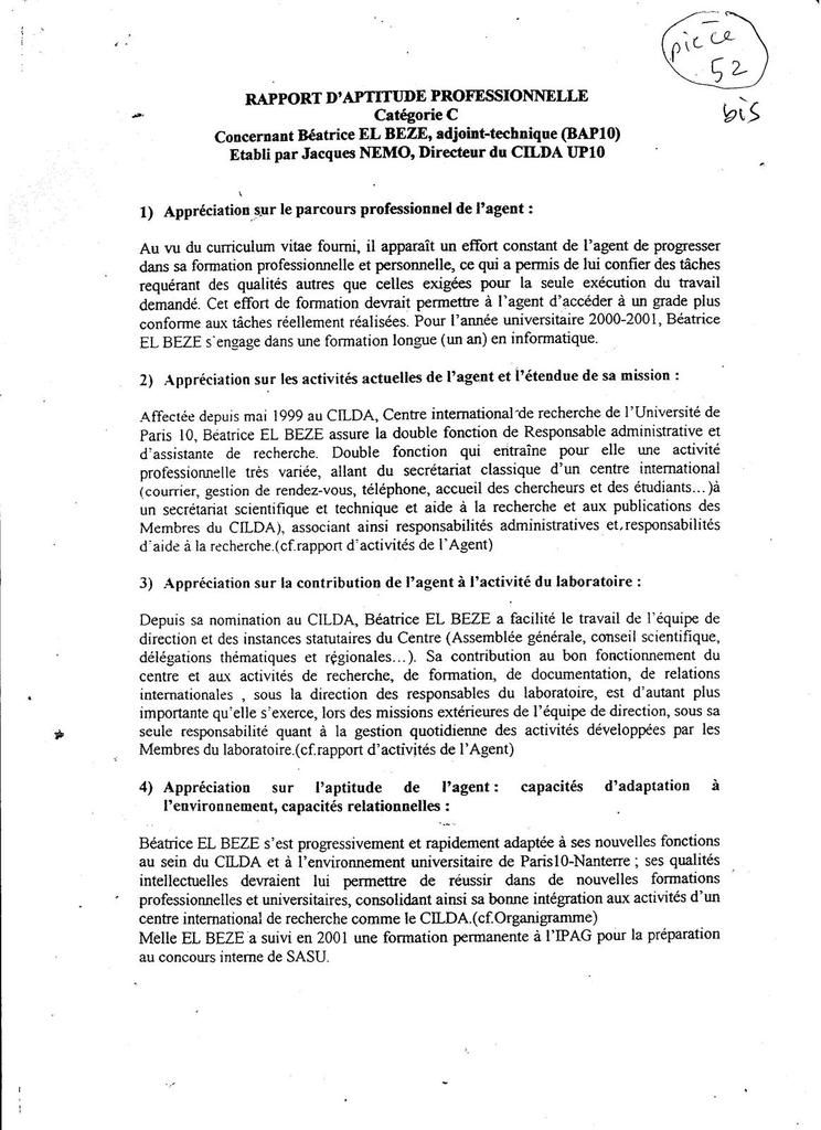 ci dessous mes rapports d’aptitude professionnelle, (2000, 2001, 2002, 2003, 2004 -2005 ,20…..tous élogieux et très bien notée ! .(et notée 20/20 en 200″3 et 2004 !. juste avant d’être embarquée menottée fin 2004 par le commissaire parce que soi disant je ne « jouissais pas de toutes (mes) facultés « ..( énorme et nauséabonde intox du commissaire M. Clouzeau … 20/20! pas mal pour une soi disant folle paranoiaque dangereuse avec troubles du comportement blabla ..ce qui prouve sans conteste les immondes diffamatoires écrites par ces deux collabos du pire, : le commissaire matthieu Clouzeau et la présidente Bernadette Madeuf !(qui elle ose écrire « son comportement s’est dégradé dès mon arrivée sur la campus à Nanterre (or suis arrivée en 1999 ) par agressivité » .. ….et suis super bien notée toutes les années qui suivent ) .. ces mensonges abjects sont donc prouvés! et donnent envie d e vomir . car ces deux collabos sciemment à de procédés criminels sont protégées en justice !.et mes plaintes traitées en immonde mascarade.(car je n’ai pas les moyens financiers d’avoir un avocat pour toutes mes plaintes ).. voilà les méthodes du lobby judéonazioniste ! : balancer des intox, diffamer, salir, falsifier des documents officiels, interner, torturer,! pour à terme tuer et salir après la mort !…on est bien dans l’effroyable..
