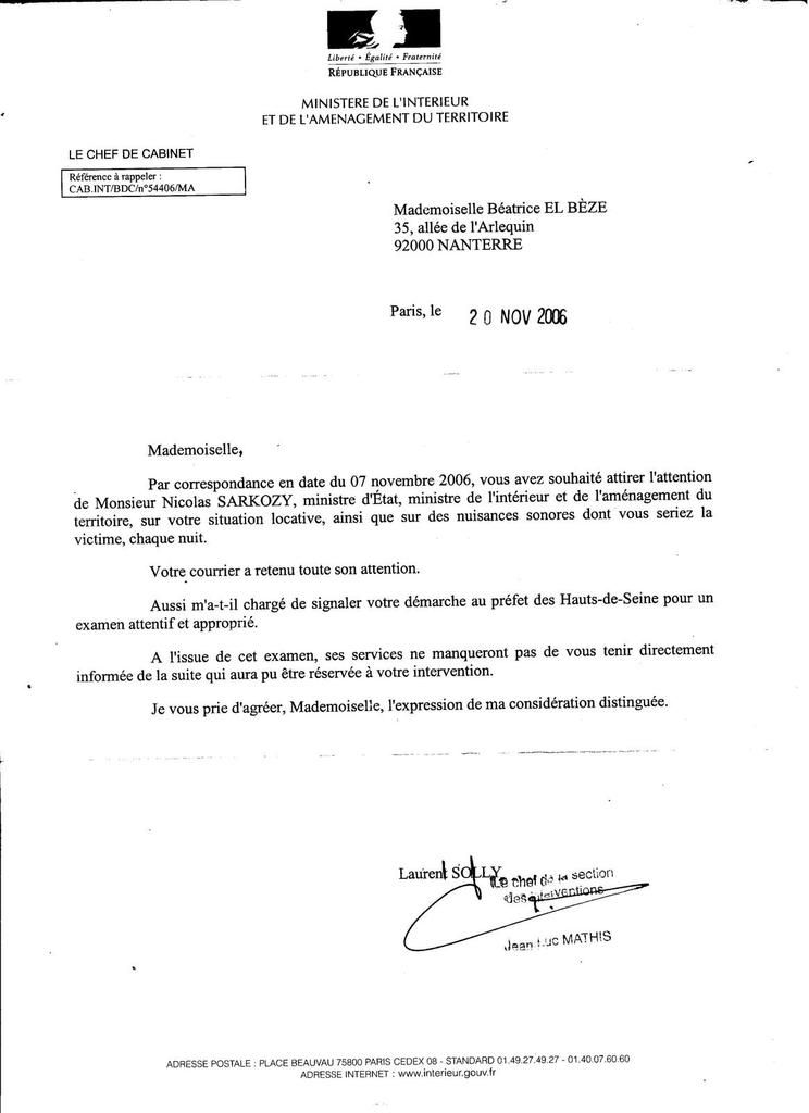 - courrier adressé par le député Noel MAMERE en 2006 a SARKOZY en mon soutien