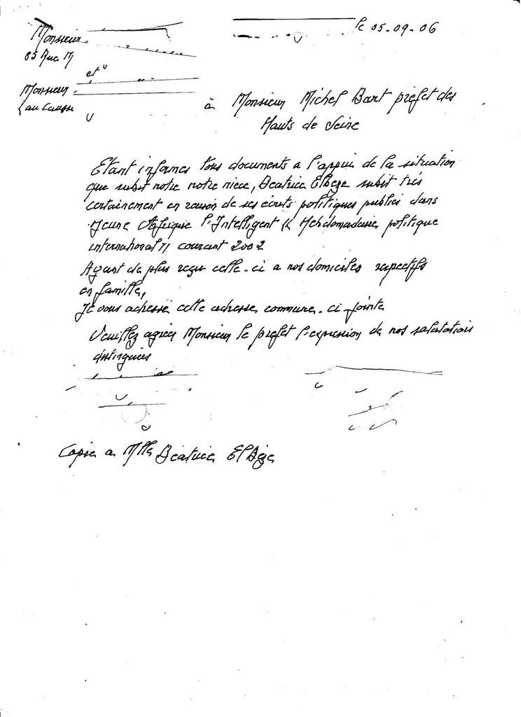 attestation de ma cousine (coté maternel) et son mari en 2006 (ai caché ici leur noms pour leur sécurité et à leur demande, mais ces documents sont aussi en justice )