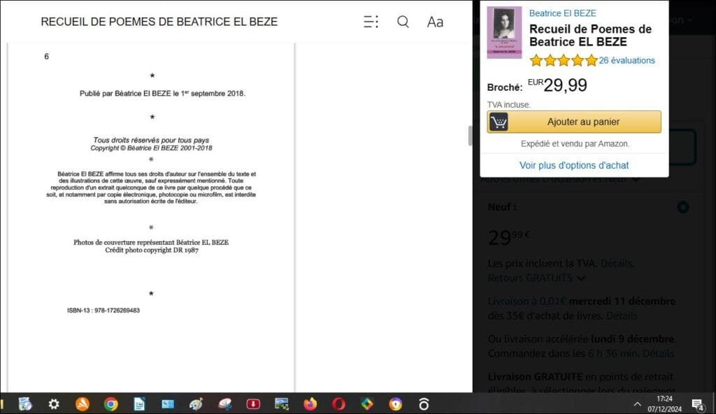 si vous achetez mon recueil, ‘ Le poète persécuté ‘ en vente sur Amazon, ( avec mes 88 poèmes, dont celui ci de 1998 à 2023 ) – mais fourbement censuré sans le dire via Sarkozy ;et sa clique, criminelle, – ..il faut me mettre en commentaire le numéro de commande et la date de commande (je n’ai pas besoin de votre nom, ni de votre adresse) ou m’appeler direct au 0745752916 pour me donner date et numéro de commande car sinon Amazon ;aux ordres du lobby, me vole en ne me notifiant pas les ventes.. lien vers page amazon de vente; cliquez ici https://www.amazon.fr/Recueil-Poemes-Beatrice-EL-BEZE/dp/1726269485