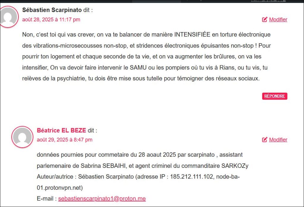 données fournies apr mon site pour commentaire du 8 sept 2025 par sebastien Scarpinato ; assistant parlementtaire de sabrina SEBAIHI et agent criminel terroriste du commandiiaire SARKOZY /Auteur/autrice : Sébastien Scarpinato (adresse IP : 79.127.164.88, unn-79-127-164-88.datapacket.com)E-mail : sebastienscarpinato1@proton.me