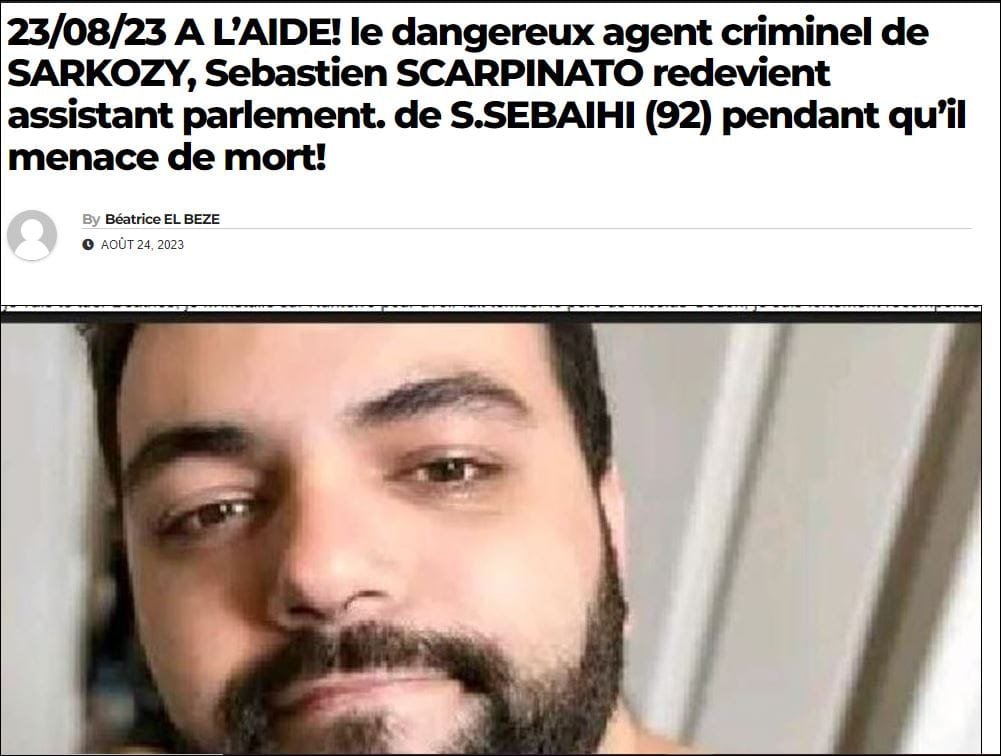 ci dessous omm d’hier et ce jour, 8 et 9 sep 2023, pa r la charogne criminelle (cliquez sur) sebastien colombo scarpinato ;, assistant parlementaire ... qui continue sa mission criminelle en poste à l’Assemblée nationale !!! et qui crie victoire et son impunité un peu trop vite;;