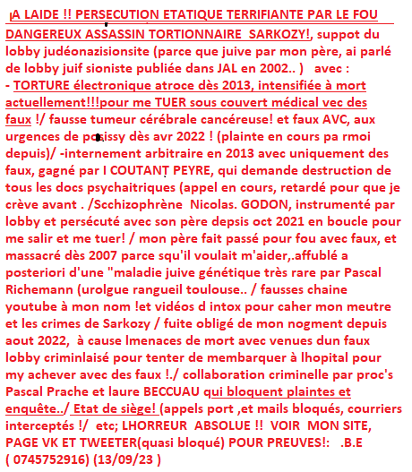 en préalable avant mon article au dessous!, voici quelques liens capitaux dans ma persécution terrifiante via l’assassin suppôt du lobby judeonazisioniste SARKOZY