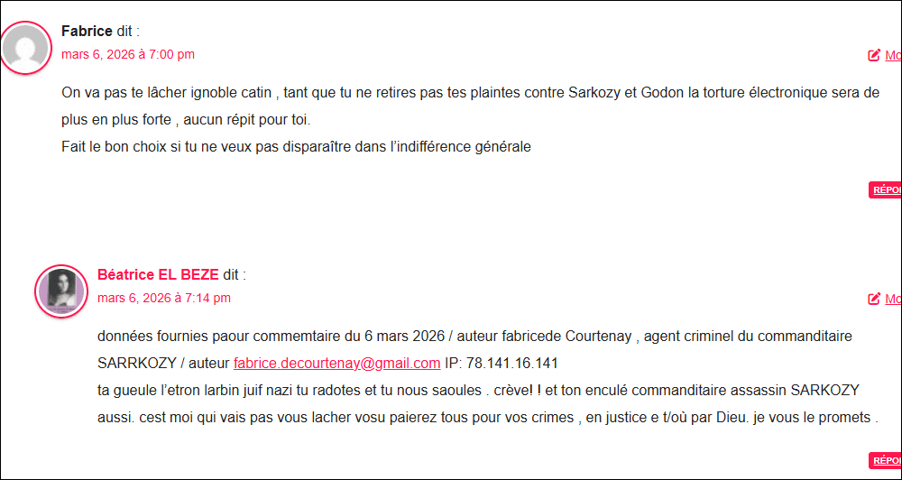 données fournies par mon site pour commentaire du 10 mars 2026 par jfabrice de courtenay , agent criminel du commanditaire SARKOZY /Fabrice fabrice.decourtenay@gmail.com 78.141.16.141