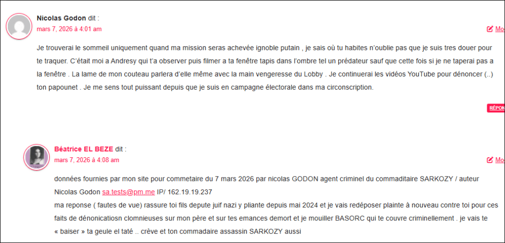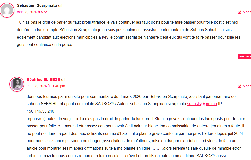 tmmentaire du 17 mars 2026 par Auteur/autrice : Sébastien Scarpinato assistant perlementaire de Sabrina SEBAIHI et agent criminel du commaditaire SARKOZY / (adresse IP : 31.171.153.100, 31.171.153.100) E-mail : sa.tests@pm.me