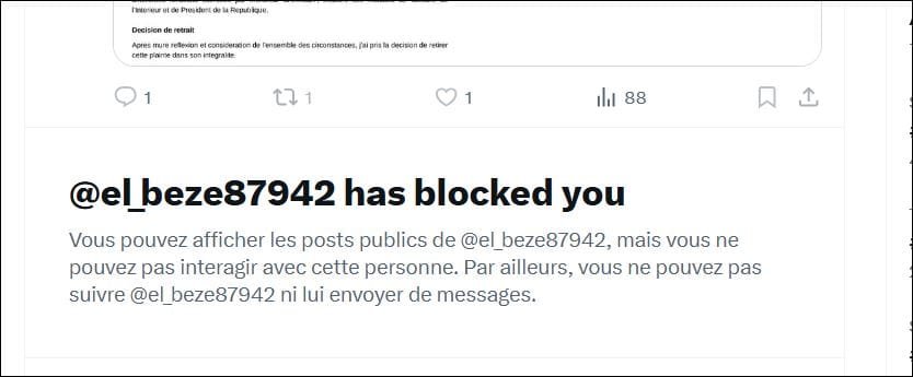 voici le faux post sur faux profil X france , ladresse du compte @el_beze 89742)nest pas la mienne