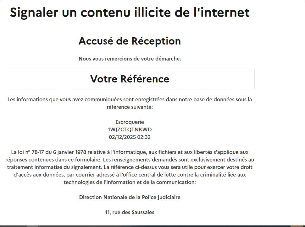 les agents de SARKOZY sûrs de leur impunité quoi qu’ ils fassent, osent même faire un signalement pharos le 6 déc à 2h32 après le mien ( le voir cidessous) fait le 2 déc 2025 à 2h 32 (le voir ci dessous où ils racontent des mensonges puisqu’ls ne peuvent pas à priori avoir montré ma carte identité qui est en ma possession ( sauf s’ils se sont procuré la copie par fraude ou sils mentent purement das ce singlement mensonger postrieur du 6 déc 2025)