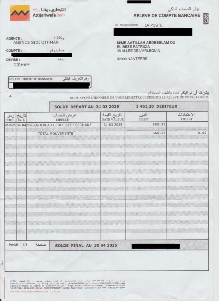 josette et amir AATILLAH, femme e tfils d’Abdesslam sont de sales pourritures voleurs et collabos criminels et tels des charognards sur consignes des juifs nazis de la pourriture SARKOZY, se sont appropiés mon logment au maroc mes économies tous mes bijoux d’uen vie !! par vol escroquerie me mettant en danger du pire en France coincée dans le Var à almerci dun embarquement par Samu , et des pompiers( quisont vensu le 28 aout 2025 et le 30 janv 2026 via des fasu posts avec usurpation d emo dientité sur les reseaux prévus avec faux médicaux aux urgences sur consignes lenculé ASSASSIN commanditaire SARKOZY Que Dieu leur inflige le pire !)..pour preuve qu »Abdesslam AATILLAH était bien mon compagnon depuis 27ans, et que ce logment a été acheté avec mon argent . (pussque ce fils de pute du lobby nicolas GODON agent criminel du commanditare SARKOZY a fait hier une vidéo dintox dégueulasse au taf comme hab pour raconter des saloperies. Nicolas GODON malade mental de l’HP schizo est le larbin, la pute du lobby payé pour salir et servir la pute criminelle SARKOZY , vdiéos d’hier pour raconter que je connaisais à peine, Abdesslam AATILLAH, et quil n’était pas mon compagnon blabla et autres saloperies de cette merde juive nazie Nicolas GODON, fou dangereux schizo couvert criminellement par le collabo criminel procureur Yves BADORC malgré plainte grave contre N.GODON dèpuis mai 2024😉 et qui fait nombre devidéos gravement calomnieuses pour le ompte du fils depute assassin SARKOZY !,Nicolas GODON a ainsi raconté aussi en vidéo que mon père était un pédociminel sur plusieurs enfants, et ( voir sa vdiéo grave de 5 minutes ici )) quli l »avait sodomisé » (!!) blabla , et il a raconté iussii en vidéo en janv 2026….que j’étais « décédée » !! etc…., preuves que cet enculé ment et salit sur consignes au taf, donc voici, donc un relevé de compte dil y aun an que j ai retrouvé hier! dans mes docs , cest la preuve d un compte commun bancaire à nos deux noms où moi seule versait de largent sur ce compte commun crée pour ça (lhistorique bancaire de ce compte peut prouver sans peine le versement entre autres de mon PEL sur ce compte il y quelques années juste avant l’achet de mon logement au Maroc prévu pour ma sécurité par Abdelssam AATILAAH (qui pouvait donc se servir de notre compte au Maroc , il l »avait acheté pour moi parce que ej ne parle pas la langue arabe et au Maroc une femme ne peut acheter un logment à som nom seul, (ai caché par surlignage en noir les numéros de notre compte commun
